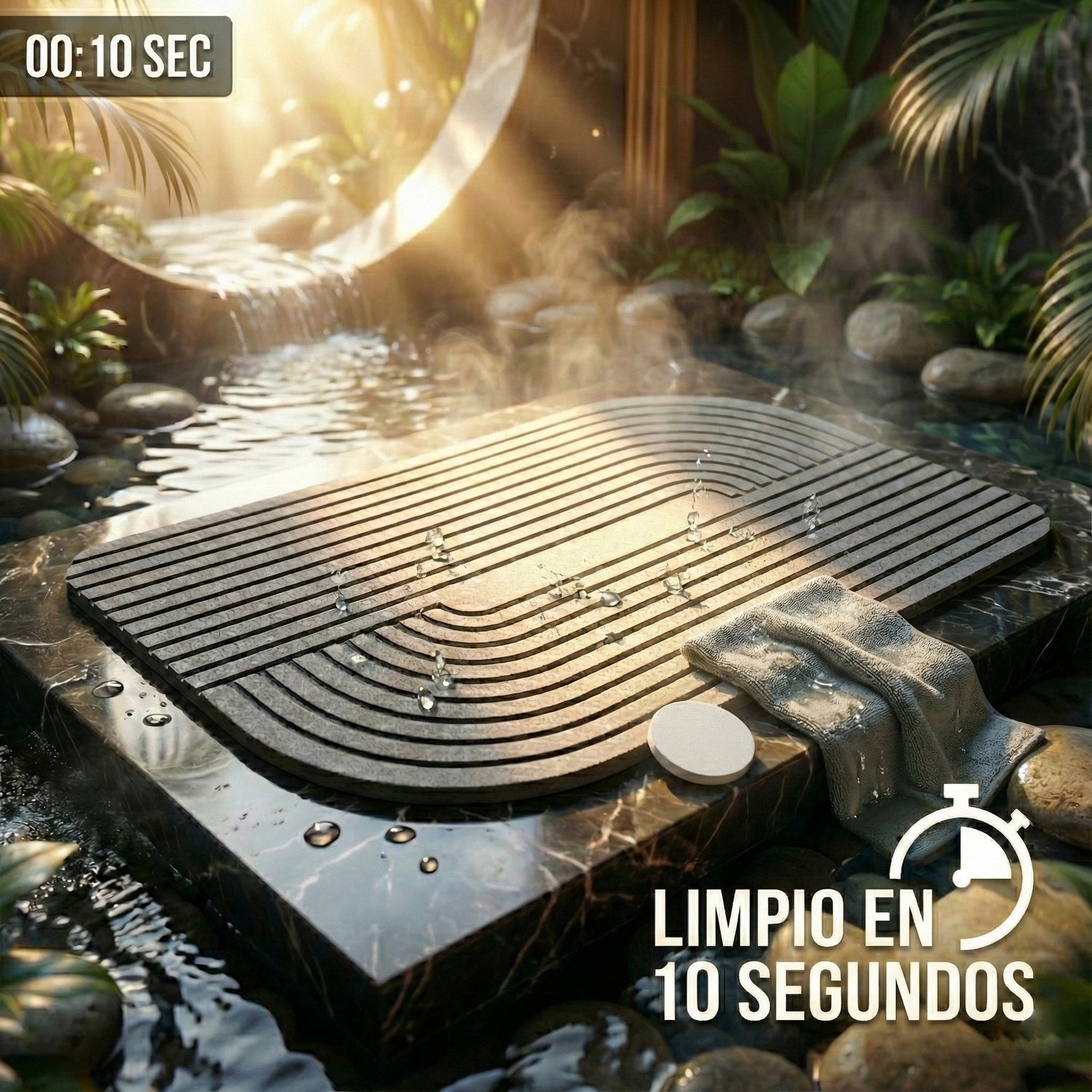 Sales de la ducha, das un paso… y el agua se absorbe al momento.